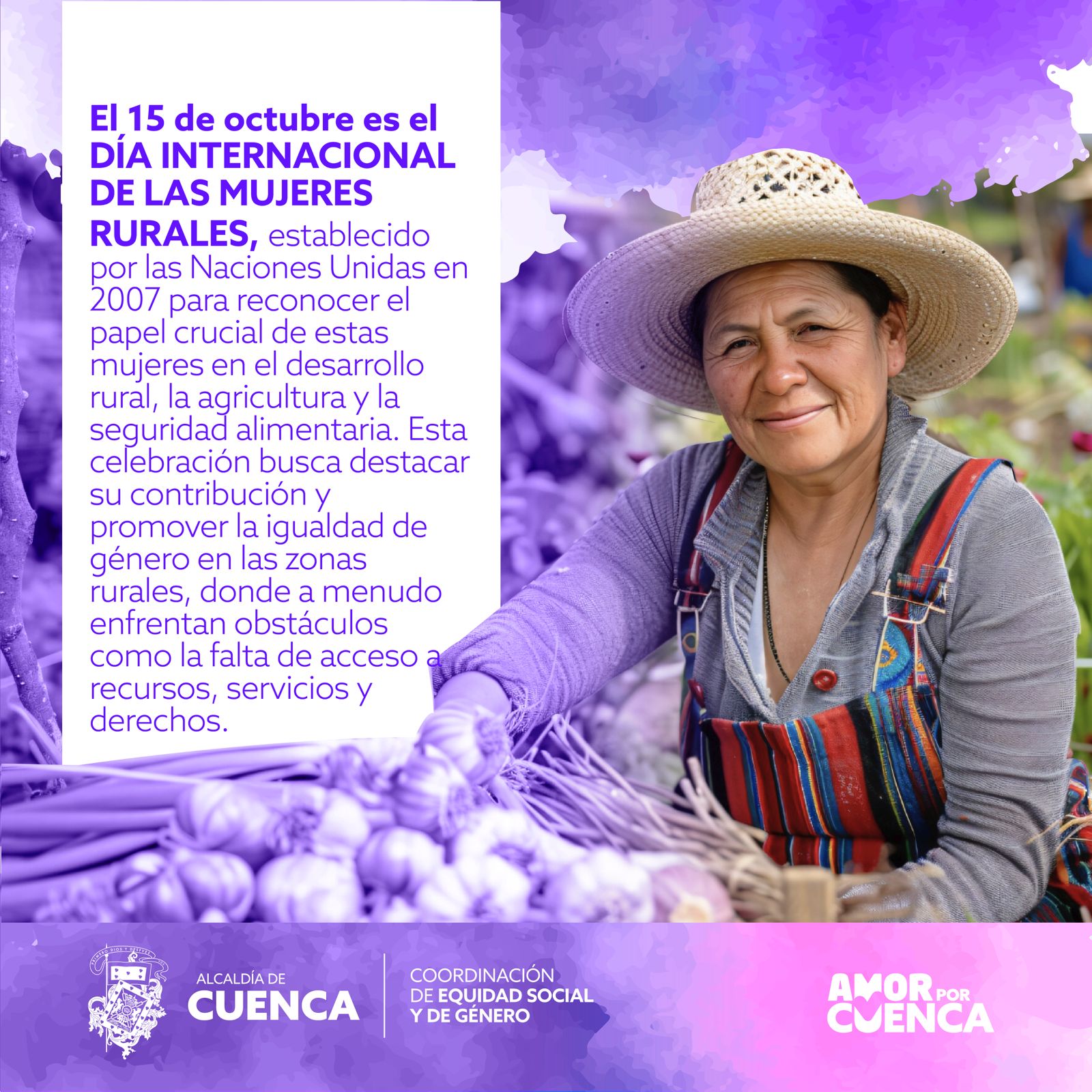 El Día Internacional de las Mujeres Rurales es una jornada que se celebra anualmente el 15 de octubre desde 1997, establecido por la Asamblea General de las Naciones Unidas en 2007.